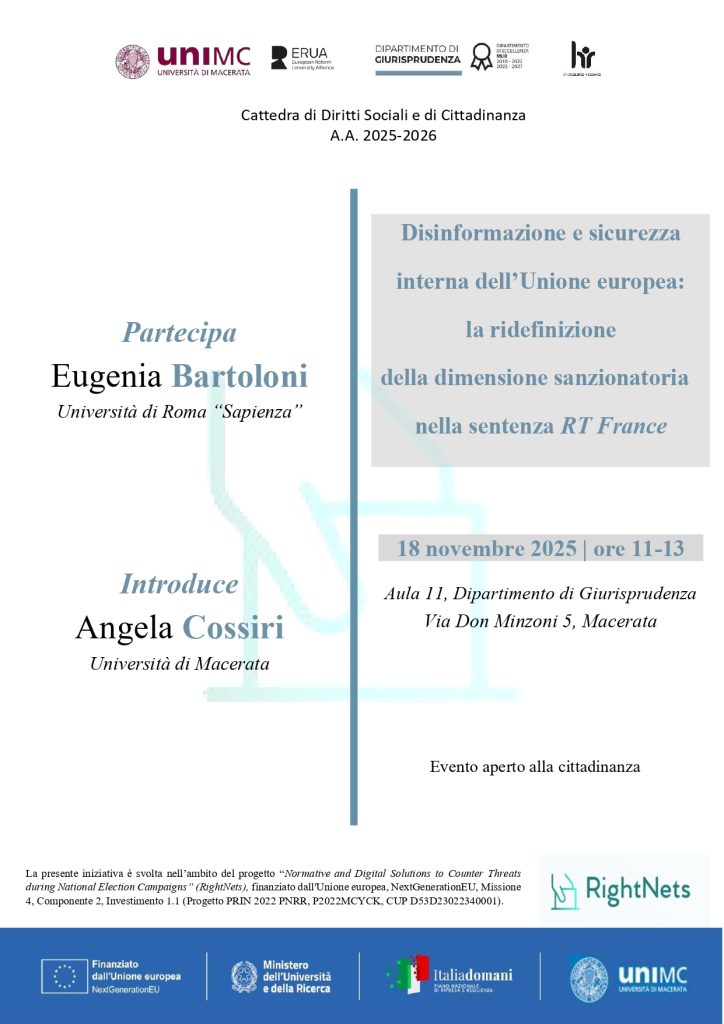 Dove: Sala riunioni del Dipartimento di Giurisprudenza, Università di Macerata - Seminario – 22/01/2025