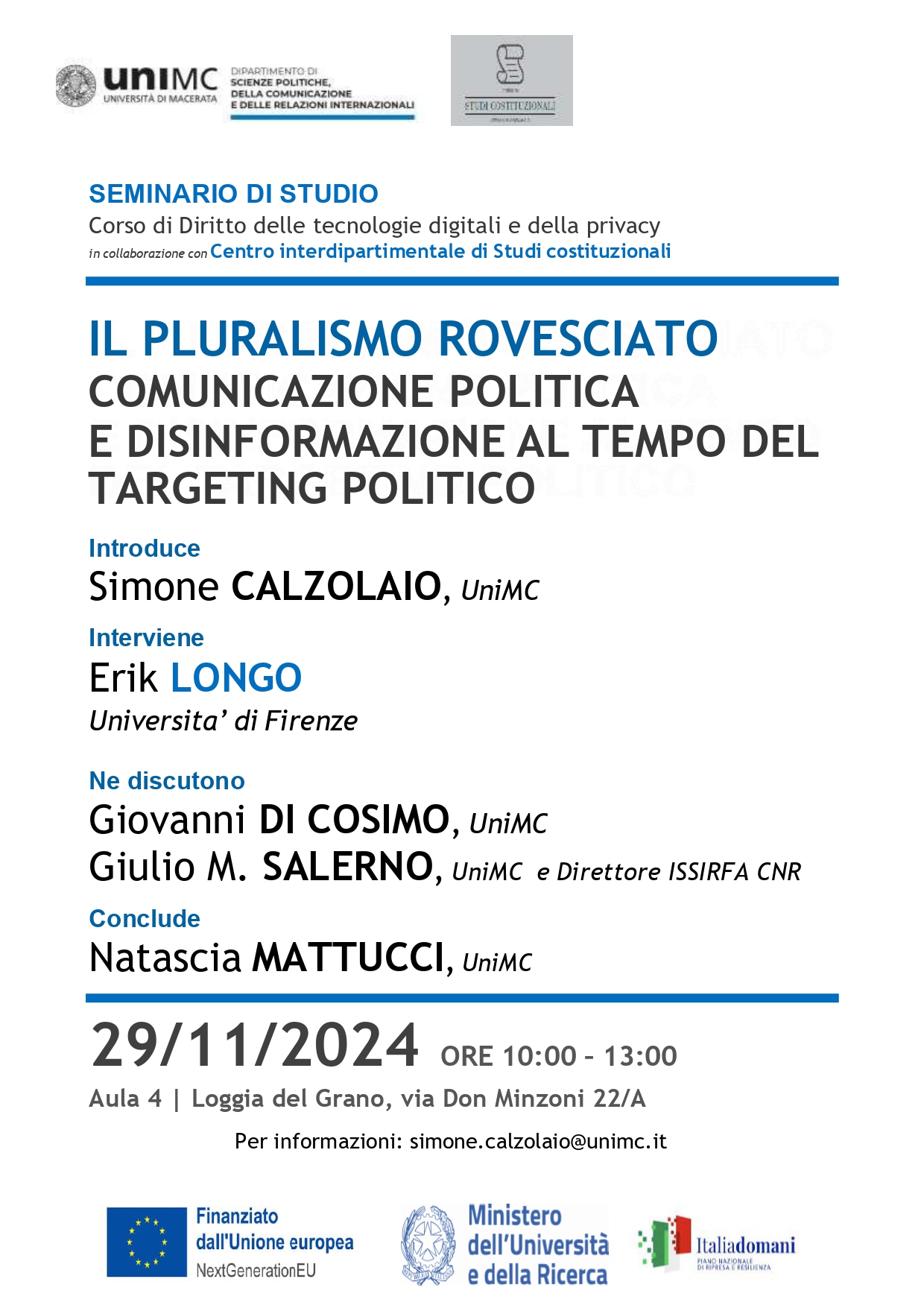 “Il Pluralismo rovesciato. Comunicazione politica e disinformazione al tempo del targeting politico”